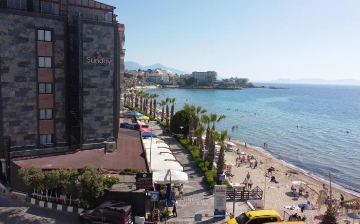 Sunday Beach Hotel offers top-notch services and amenities, ensuring guests experience utmost comfort.Share your photos and respond to emails at your convenience, thanks to the free Wi-Fi internet access offered by hotel.Should you require transportation to or from the airport, hotel is able to organize it prior to your arrival date. Taxi, car hire and shuttle offerings at the hotel simplify arranging your excursions, explorations, and additional activities in Kusadasi.Visitors can take advantage of complimentary parking directly at the hotel. Reception services such as concierge service, express check-in or check-out, luggage storage and safety deposit boxes are available to accommodate your requirements. Securing top-notch tickets and snagging sought-after dining reservations become effortless, thanks to the hotel's ticket service and tours.Traveling with minimal baggage is achievable at Sunday Beach Hotel, as the hotel's dry cleaning service and laundry service ensures your garments stay fresh. Room amenities like 24-hour room service, room service and daily housekeeping contribute to making a perfect selection for your stay.Minor items you neglected to bring won't cause major issues! Simply visit convenience stores to acquire what's necessary.The hotel maintains a completely smoke-free zone, providing a breathable atmosphere.Smoking is limited to specified smoking zones. Each accommodation at Sunday Beach Hotel is thoughtfully created and adorned to provide visitors with a comfortable, home-like atmosphere. In certain rooms, the hotel offers linen service and air conditioning for guest convenience and satisfaction.At Sunday Beach Hotel, the uniquely tailored rooms provide a configuration choice resembling a balcony or terrace.In select rooms, guests at the hotel can enjoy top-notch in-room entertainment with television and cable TV available for their convenience. Rest assured, in a few chosen rooms, you will find the convenience of bottled water and mini bar at your disposal.Sunday Beach Hotel offers a hair dryer and toiletries in the restrooms of specific accommodations. Embark on your holiday experience in the most ideal manner. Commence each morning of your visit with an on-site breakfast. Experience the delight of a fresh morning by savoring excellent coffee at the cafe situated within hotel. Should you prefer not to venture out for a meal, the enticing culinary choices at hotel are always available for your satisfaction.Experience an unforgettable evening with your fellow travelers just a short distance away, at hotel's bar. Sunday Beach Hotel provides a superb assortment of leisure amenities for guests to enjoy. Make certain to allocate time for discovering the shoreline, easily reachable right from the hotel.