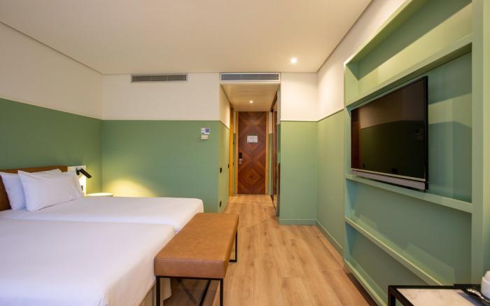 Eurostars Acteon offers top-notch services and amenities, ensuring guests experience utmost comfort. Maintain seamless communication using the complimentary Wi-Fi at hotel.Guests can avail parking facilities at the hotel.During your stay at this fantastic hotel, the attentive front desk personnel can provide you with a range of amenities such as luggage storage and safety deposit boxes.Obtaining passes for the town's top entertainments becomes effortless with hotel's ticket service. For extended visits or whenever required, the laundry service ensures your preferred travel garments remain fresh and accessible. Craving relaxation? Make the most of your stay at the Eurostars Acteon with convenient amenities like room service and daily housekeeping at your disposal. For visitors wishing to smoke, designated smoking zones can be found.At Eurostars Acteon, every guestroom is provided with convenient amenities and fittings to ensure a comfortable stay.Enhance your experience at hotel with the knowledge that certain rooms are equipped with linen service and air conditioning for your convenience. Certain rooms offer in-room amusement features such as the television for your enjoyment.In select rooms at the hotel, mini bar is available for those moments when it seems necessary.In the hotel, certain guest bathrooms come equipped with essential bathroom amenities, such as a hair dryer and toiletries, ensuring a comfortable stay for guests. Begin your day with a scrumptious on-site breakfast available each morning at Eurostars Acteon. At the hotel, an assortment of easily accessible and delicious meal choices are available to satisfy your appetite whenever it strikes.Enjoy an entertaining evening with your fellow travelers at the hotel's bar.