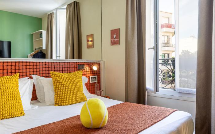 Experience an abundance of unparalleled facilities and features at Hotel Olympic Paris Boulogne by Patrick Hayat. Maintain seamless communication using the complimentary Wi-Fi at hotel. Effortlessly arrange transportation to and from the airport using the hotel's airport transfer services. Discovering Paris becomes even more accessible, thanks to the shuttle amenities provided at the hotel. During your stay at this fantastic hotel, the attentive front desk personnel can provide you with a range of amenities such as concierge service, luggage storage and safety deposit boxes.For extended visits or whenever required, the laundry service ensures your preferred travel garments remain fresh and accessible.Craving relaxation? Make the most of your stay at the Hotel Olympic Paris Boulogne by Patrick Hayat with convenient amenities like room service and daily housekeeping at your disposal.Kindly note that smoking is prohibited in the hotel to ensure fresher air for all visitors.At Hotel Olympic Paris Boulogne by Patrick Hayat, every guestroom is provided with convenient amenities and fittings to ensure a comfortable stay. Enhance your experience at hotel with the knowledge that certain rooms are equipped with blackout curtains and air conditioning for your convenience.Certain rooms offer in-room amusement features such as the television for your enjoyment.In select rooms within the hotel, bottled water and a coffee or tea maker is available to cater to your requirements when desired.In the hotel, certain guest bathrooms come equipped with essential bathroom amenities, such as a hair dryer, toiletries, bathrobes and towels, ensuring a comfortable stay for guests. Begin your day with a scrumptious on-site breakfast available each morning at Hotel Olympic Paris Boulogne by Patrick Hayat.Begin your day feeling refreshed and invigorated as you enjoy a delightful cup of quality coffee available at the cafe situated within the hotel.