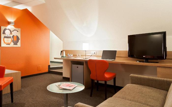 Kyriad Strasbourg Sud - Lingolsheim offers top-notch services and amenities, ensuring guests experience utmost comfort. Share your photos and respond to emails at your convenience, thanks to the free Wi-Fi internet access offered by hotel. Experience the wonders of Lingolsheim with ease by utilizing the services provided at car hire. Visitors can take advantage of complimentary parking directly at the hotel.Reception services such as concierge service, express check-in or check-out, luggage storage and safety deposit boxes are available to accommodate your requirements.Traveling with minimal luggage is achievable at Kyriad Strasbourg Sud - Lingolsheim due to the hotel's dry cleaning service ensuring your garments stay fresh. Room amenities like room service and daily housekeeping contribute to making a perfect selection for your stay.The hotel maintains a completely smoke-free zone, providing a breathable atmosphere. Embark on your holiday experience in the most ideal manner. Commence each morning of your visit with an on-site breakfast. Experience the delight of a fresh morning by savoring excellent coffee at the cafe situated within hotel.Should you prefer not to venture out for a meal, the enticing culinary choices at hotel are always available for your satisfaction. Experience an unforgettable evening with your fellow travelers just a short distance away, at hotel's bar. Kyriad Strasbourg Sud - Lingolsheim provides a superb assortment of leisure amenities for guests to enjoy. Each day at hotel, immerse yourself in the invigorating waters of the pool, perfect for a rejuvenating plunge or a series of revitalizing laps.
