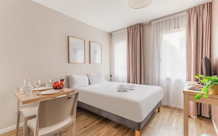 Great care is taken to ensure guests experience comfort through top-notch services and amenities.Stay connected with your associates, as complimentary Wi-Fi is available during your entire visit. When arriving by car, take advantage of the serviced apartment's convenient on-site parking facilities. The serviced apartment offers reception assistance, including luggage storage, to ensure guest satisfaction. Whether you're here for an extended stay or simply require fresh garments, the serviced apartment ensures your cherished travel attire remains spotless and accessible with the convenience of laundromat located on the premises.To ensure the well-being and convenience of all visitors, smoking is strictly prohibited throughout the entire serviced apartment.In order to ensure the utmost level of relaxation, the guestrooms feature an inviting design and are equipped with all basic necessities, creating a delightful stay experience. To ensure your satisfaction, certain rooms in the serviced apartment come fitted with linen service for a more pleasant stay.Several chosen accommodations at Appart'City Classic Nantes Quais De Loire have a separate living room incorporated into the room design. Selected rooms offer in-room amusement like television as a source of entertainment for guests to enjoy. Within specific rooms, a refrigerator and a coffee or tea maker is conveniently available for your use. Understanding the significance of bathroom facilities in enhancing visitor contentment, serviced apartment offers a hair dryer and toiletries within a few chosen chambers. Start your day stress-free at Appart'City Classic Nantes Quais De Loire as breakfast is made available for you on the premises.