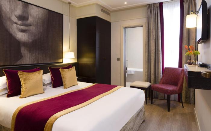 Hotel Le Chaplain Rive Gauche offers top-notch services and amenities, ensuring guests experience utmost comfort. Share your photos and respond to emails at your convenience, thanks to the free Wi-Fi internet access offered by hotel.Should you require transportation to or from the airport, hotel is able to organize it prior to your arrival date.Taxi and shuttle offerings at the hotel simplify arranging your excursions, explorations, and additional activities in Paris.Visitors can take advantage of the accessible parking options directly at the hotel. Reception services such as concierge service, luggage storage and safety deposit boxes are available to accommodate your requirements.Should you desire access to the top entertainment in the city, assistance can be provided by the hotel's tours. Traveling with minimal baggage is achievable at Hotel Le Chaplain Rive Gauche, as the hotel's dry cleaning service and laundry service ensures your garments stay fresh. Room amenities like 24-hour room service, room service and daily housekeeping contribute to making a perfect selection for your stay.The hotel maintains a completely smoke-free zone, providing a breathable atmosphere.Each accommodation at Hotel Le Chaplain Rive Gauche is thoughtfully created and adorned to provide visitors with a comfortable, home-like atmosphere. In select rooms of the hotel, guests can enjoy the advantage of having air conditioning available for their convenience.In select rooms, guests at the hotel can enjoy top-notch in-room entertainment with television and cable TV available for their convenience. Rest assured, in a few chosen rooms, you will find the convenience of a coffee or tea maker and mini bar at your disposal. Maintain your cleanliness and comfort using a hair dryer, toiletries and bathrobes available in select guest restrooms. Embark on your holiday experience in the most ideal manner. Commence each morning of your visit with an on-site breakfast.Experience the delight of a fresh morning by savoring excellent coffee at the cafe situated within hotel. Experience an unforgettable evening with your fellow travelers just a short distance away, at hotel's bar. Indulge in the numerous pursuits available at Hotel Le Chaplain Rive Gauche. Unwind after your day by exploring the massage and find warmth and relaxation.
