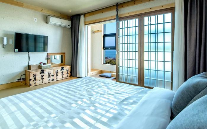 Healing Pension Badamaru offers top-notch services and amenities, ensuring guests experience utmost comfort. Share your photos and respond to emails at your convenience, thanks to the free Wi-Fi internet access offered by serviced apartment.Visitors can take advantage of the accessible parking options directly at the serviced apartment.The accommodating team at the reception will aid you with amenities such as luggage storage. Room amenities feature daily housekeeping, allowing you to unwind and make the most of your visit.Smoking is limited to specified smoking zones. Each accommodation at Healing Pension Badamaru is thoughtfully created and adorned to provide visitors with a comfortable, home-like atmosphere. In certain rooms, the serviced apartment offers linen service, blackout curtains and air conditioning for guest convenience and satisfaction.In select rooms, guests can enjoy a touch of amusement with the availability of television for their entertainment.Rest assured, in a few chosen rooms, you will find the convenience of a refrigerator and bottled water at your disposal.Maintain your cleanliness and comfort using a hair dryer and toiletries available in select guest restrooms. Should you be particularly discerning in your dining choices, you will surely appreciate having access to the on-site BBQ facilities provided at this location. Indulge in the numerous pursuits available at Healing Pension Badamaru. Make certain to allocate time for discovering the shoreline, easily reachable right from the serviced apartment.