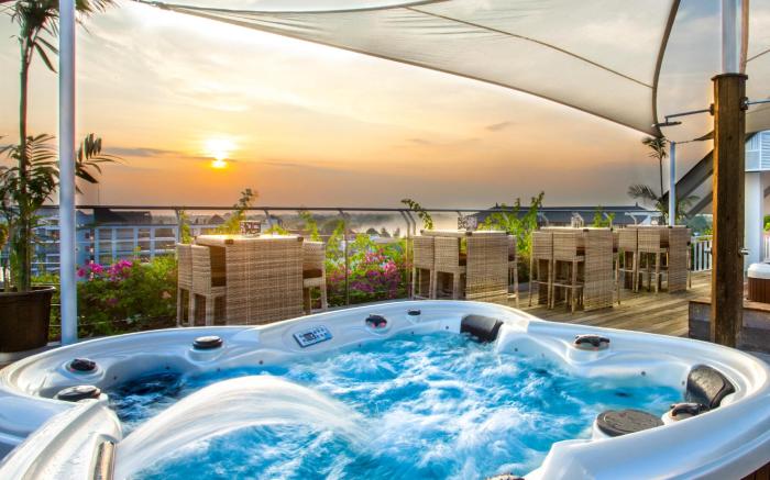 Daun Bali Seminyak Hotel provides flawless service and all the necessary facilities for visitors.Remain linked during your visit by utilizing the complimentary internet access available. Prior to your check-in date, you can arrange airport transportation services, guaranteeing a seamless and efficient experience for both arrival and departure. Services offered by taxi and car hire at the hotel ensure effortless exploration of Bali.The hotel offers complimentary parking for guests who arrive with their own mode of transport. Effortlessly plan your daily activities and travel requirements with concierge service, luggage storage and safety deposit boxes provided by the front desk services.Securing passes to the city's top attractions is simple with the hotel's ticket service and tours. For extended visits or whenever required, the dry cleaning service and laundry service ensures your preferred travel garments remain clean and accessible.During leisurely days and evenings, in-room amenities such as room service and daily housekeeping enable you to maximize your stay in the room. The hotel is completely smoke-free.In limited designated zones, smoking is exclusively permitted. Crafted for coziness, every guestroom provides an array of features, guaranteeing a tranquil night's sleep while maintaining the level of comfort.For a more enjoyable stay, select rooms at hotel are equipped with linen service, blackout curtains and air conditioning.At Daun Bali Seminyak Hotel, a selection of rooms can be found that showcase unique design elements such as a balcony or terrace. For certain chosen rooms, guests can enjoy in-room amusement like television and cable TV as a part of their stay. Rest assured that your hydration needs will be met, as some guestrooms are equipped with a refrigerator, bottled water and a coffee or tea maker. It is worth noting that certain guest bathrooms feature a hair dryer, toiletries, bathrobes and towels for your convenience. Each morning at Daun Bali Seminyak Hotel, a scrumptious, homemade breakfast kick-starts the day. Begin your holiday mornings right with your essential cup of coffee, offered daily at the cafe on-site.During your visit, indulge in a range of delightful culinary choices at hotel to enhance your experience.Experience a fantastic evening effortlessly! Relish an entertaining night without venturing beyond the confines of the bar. During your stay at hotel, an array of engaging activities and amenities guarantees a delightful experience.During your stay, the hotel provides direct access to a beach, ensuring you remain near the sea throughout your visit.Treat and spoil yourself by stopping at massage, hot tub and spa for a memorable experience. Begin your holiday perfectly by taking a plunge into the swimming pool.At the hotel, enjoy a laid-back beverage experience by the poolside bar, sipping on a soothing cocktail. Eliminate those holiday calories by stopping by hotel and making use of their well-equipped exercise amenities.