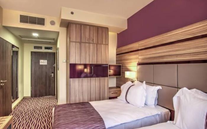 At Holiday Inn Plovdiv By IHG, exceptional service and top-notch amenities create a memorable experience for guests.Complimentary internet access is available in the hotel to ensure you stay connected during your visit.Amenities at taxi offered by Holiday Inn Plovdiv By IHG simplify the organization of your excursions, tourist activities, and other adventures in Plovdiv.For guests with their own vehicle, parking facilities are provided.Continuously receive the support you require through front desk amenities such as luggage storage and safety deposit boxes. At the hotel, their tours can even assist you in booking tickets and securing reservations for leisure activities and adventures.Craving relaxation? In-room amenities such as room service and daily housekeeping allow you to maximize your time spent inside the room.Due to health concerns, smoking is strictly prohibited within the entire premises of hotel.Accommodations come equipped with all the conveniences required for a restful night's slumber.A selection of rooms feature linen service and air conditioning to ensure your comfort and convenience.A number of rooms feature television for guest amusement and enjoyment.In certain rooms, the hotel offers visitors access to a coffee or tea maker and mini bar.Holiday Inn Plovdiv By IHG offers a hair dryer, toiletries and bathrobes in the restrooms of specific accommodations. A delightful breakfast is the perfect way to begin your day, and at Holiday Inn Plovdiv By IHG, you can always indulge in a scrumptious meal on-site.All adore a delightful cup of coffee! An on-site coffee shop ensures you can relish a cup of authentic, freshly-brewed coffee every morning -- or whenever you desire it. Allow your journey to be free from the pangs of hunger! On-site eateries offer delicious and accessible meal choices. An evening spent at hotel's bar can offer as much enjoyment as venturing out with your fellow travelers.At Holiday Inn Plovdiv By IHG, guests can take pleasure in the delightful recreational amenities provided for their entertainment.Conclude your days in complete tranquility by paying a visit to salon and sauna for ultimate relaxation. At Holiday Inn Plovdiv By IHG, a wide array of amenities guarantees a fulfilling experience throughout your visit. Make your holiday truly memorable by taking a rejuvenating plunge into the pool.At the hotel fitness center, you have the option to engage in your daily exercise routine or simply alleviate your jet lag by breaking a sweat.