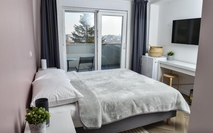 Rooms at Zajceva 34 offers top-notch services and amenities, ensuring guests experience utmost comfort.Share your photos and respond to emails at your convenience, thanks to the free Wi-Fi internet access offered by hotel.Visitors can take advantage of complimentary parking directly at the hotel. Reception services such as express check-in or check-out and luggage storage are available to accommodate your requirements. Securing top-notch tickets and snagging sought-after dining reservations become effortless, thanks to the hotel's ticket service and tours. Traveling with minimal luggage is achievable at Rooms at Zajceva 34 due to the hotel's laundry service ensuring your garments stay fresh. Room amenities feature daily housekeeping, allowing you to unwind and make the most of your visit. Smoking is limited to specified smoking zones. Each accommodation at Rooms at Zajceva 34 is thoughtfully created and adorned to provide visitors with a comfortable, home-like atmosphere. In certain rooms, the hotel offers linen service, blackout curtains and air conditioning for guest convenience and satisfaction. At Rooms at Zajceva 34, the uniquely tailored rooms provide a configuration choice resembling a balcony or terrace.In select rooms, guests can enjoy a touch of amusement with the availability of television for their entertainment.Rest assured, in a few chosen rooms, you will find the convenience of a refrigerator and mini bar at your disposal.Rooms at Zajceva 34 offers a hair dryer, toiletries and bathrobes in the restrooms of specific accommodations. Should you be particularly discerning in your dining choices, you will surely appreciate having access to the on-site shared kitchen provided at this location.