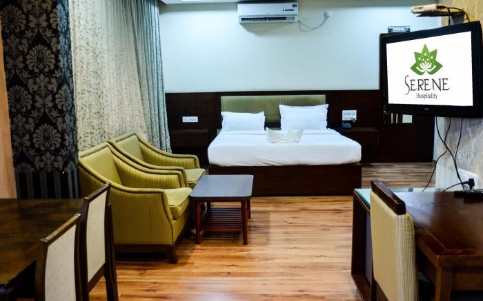 Experience an abundance of unparalleled facilities and features at Serene Boutique Hotel. Maintain seamless communication using the complimentary Wi-Fi at serviced apartment. Discovering Bangalore becomes even more accessible through the taxi and car hire amenities provided at the serviced apartment.For visitors traveling by automobile, complimentary parking is available.During your stay at this fantastic serviced apartment, the attentive front desk personnel can provide you with a range of amenities such as concierge service, luggage storage and safety deposit boxes.In search of city's top entertainment, seek assistance at the serviced apartment's ticket service and tours for reservations.At the serviced apartment, utilize the on-site dry cleaning service and laundry service to maintain your beloved travel attire fresh, allowing you to bring fewer clothes. Craving relaxation? Make the most of your stay at the Serene Boutique Hotel with convenient amenities like 24-hour room service, room service and daily housekeeping at your disposal.For visitors wishing to smoke, designated smoking zones can be found. At Serene Boutique Hotel, every guestroom is provided with convenient amenities and fittings to ensure a comfortable stay. Enhance your experience at serviced apartment with the knowledge that certain rooms are equipped with linen service and air conditioning for your convenience.Certain rooms boast in-room amusement features such as television and cable TV, offering guests an enjoyable stay. In select rooms within the serviced apartment, a refrigerator and a coffee or tea maker is available to cater to your requirements when desired. Essential restroom facilities are equally significant, and at the serviced apartment, some visitor bathrooms offer toiletries to enhance your experience. Begin your day with a scrumptious on-site breakfast available each morning at Serene Boutique Hotel.At the serviced apartment, an assortment of easily accessible and delicious meal choices are available to satisfy your appetite whenever it strikes.