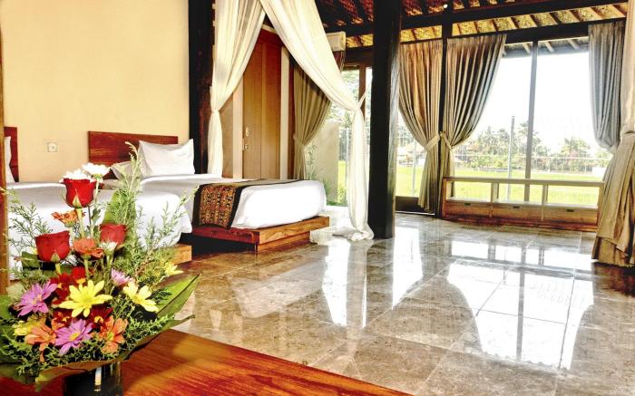 Kabinawa Ubud Villas and Cafe provides flawless service and all the necessary facilities for visitors. Stay connected with your associates, as complimentary Wi-Fi is available during your entire visit. To facilitate your arrival and departure, you can pre-book airport transfer services prior to checking in. The resort villa offers taxi, car hire and shuttle amenities for your ease in navigating around Bali.When arriving by car, you'll be grateful for the on-site complimentary parking at resort villa. The resort villa offers reception amenities including concierge service, express check-in or check-out, luggage storage and safety deposit boxes to ensure a comfortable stay for guests.Should you require assistance, the ticket service and tours can also aid in booking tickets and securing reservations at the finest shows and events in the vicinity.Whether it's an extended stay or simply needing fresh attire, dry cleaning service and laundry service provided by resort villa ensures your cherished travel garments stay spotless and accessible.Your stay will be comfortable with the presence of 24-hour room service, room service and daily housekeeping as an in-room amenity for your relaxation and enjoyment. Smoking is permitted solely in the specified smoking zones allocated by resort villa. In order to ensure the utmost level of relaxation, the guestrooms feature an inviting design and are equipped with all basic necessities, creating a delightful stay experience.To ensure a pleasant stay, a selection of rooms at resort villa come furnished with linen service and air conditioning, all designed with your ease in mind. Several chosen accommodations at Kabinawa Ubud Villas and Cafe have a balcony or terrace incorporated into the room design. In select rooms, visitors can enjoy a touch of amusement with the availability of television and cable TV for their entertainment needs. Within specific rooms, a refrigerator, bottled water, a coffee or tea maker, instant coffee and mini bar is conveniently available for your use.Understanding the significance of bathroom facilities in enhancing visitor contentment, resort villa offers a hair dryer, toiletries and bathrobes within a few chosen chambers. Each day, arise to a delightful complimentary morning meal at Kabinawa Ubud Villas and Cafe. How about kicking off each day of your getaway with a delicious cup of coffee? At the resort villa, relish in the invigorating taste of a freshly brewed, excellent coffee. Various excellent meal offerings at resort villa ensure that enticing and easily accessible options are constantly available. Upon your arrival, don't miss experiencing bar for enjoyable in-house evening entertainment.Throughout the day, engage in the entertaining activities available at Kabinawa Ubud Villas and Cafe. Make sure to discover the readily available beach at resort villa.Unwind and conclude each day delightfully by stopping by massage and spa, ensuring a soothing experience. Unwind by the pool at resort villa and cherish a leisurely moment.