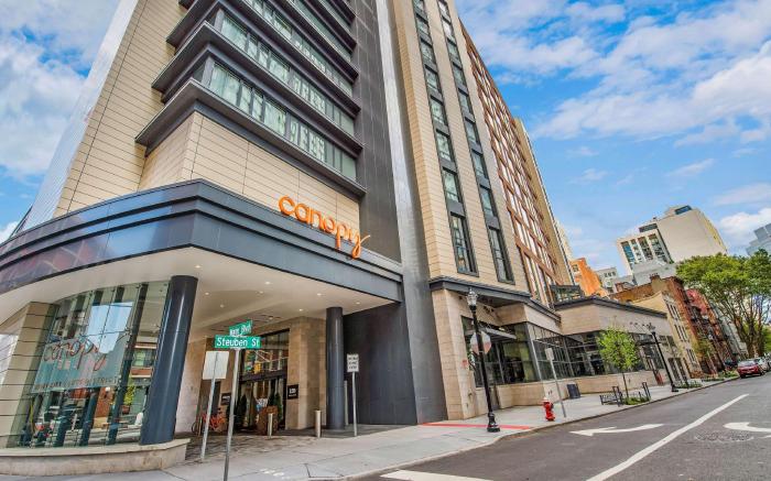 At Canopy by Hilton Jersey City Arts District, exceptional service and top-notch amenities create a memorable experience for guests. Complimentary internet access is available in the hotel to ensure you stay connected during your visit.Amenities at shuttle offered by Canopy by Hilton Jersey City Arts District simplify the organization of your excursions, tourist activities, and other adventures in Jersey City (NJ).For guests with their own vehicle, parking facilities are provided.Continuously receive the support you require through front desk amenities such as concierge service, luggage storage and safety deposit boxes. Craving relaxation? In-room amenities such as room service and daily housekeeping allow you to maximize your time spent inside the room.Due to health concerns, smoking is strictly prohibited within the entire premises of hotel. Accommodations come equipped with all the conveniences required for a restful night's slumber. A selection of rooms at Canopy by Hilton Jersey City Arts District come furnished with blackout curtains to cater to your needs and comfort. A few chosen rooms are equipped with television, in-room video streaming and cable TV to ensure guest amusement. In certain chosen rooms, instant tea is conveniently available for your use. Canopy by Hilton Jersey City Arts District offers a hair dryer, toiletries and bathrobes in the restrooms of specific accommodations. Allow your journey to be free from the pangs of hunger! On-site eateries offer delicious and accessible meal choices. An evening spent at hotel's bar can offer as much enjoyment as venturing out with your fellow travelers. At Canopy by Hilton Jersey City Arts District, guests can take pleasure in the delightful recreational amenities provided for their entertainment.At the hotel fitness center, you have the option to engage in your daily exercise routine or simply alleviate your jet lag by breaking a sweat.
