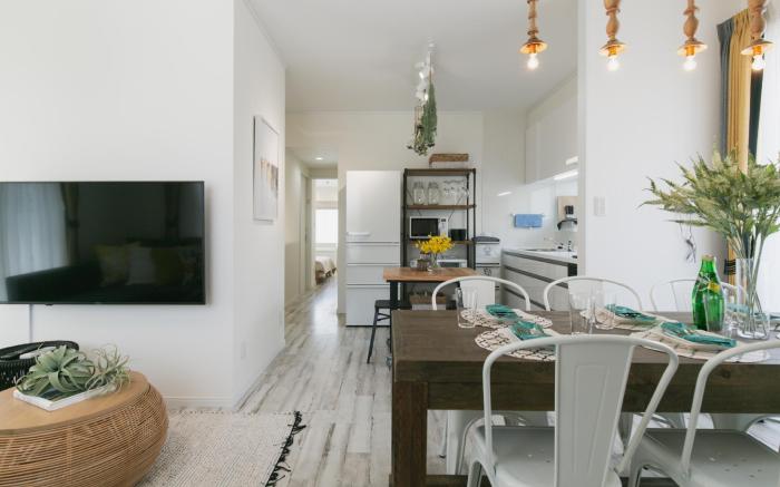 L★1日1組限定!沖縄北IC&海中道路・ビーチ近く♪3寝室7名!ハイセンス無人ホテル provides flawless service and all the necessary facilities for visitors. When arriving by car, you'll be grateful for the on-site complimentary parking at home. In order to ensure the utmost level of relaxation, the guestrooms feature an inviting design and are equipped with all basic necessities, creating a delightful stay experience.To ensure a pleasant stay, a selection of rooms at home come furnished with linen service and air conditioning, all designed with your ease in mind.Selected rooms offer in-room amusement like television as a source of entertainment for guests to enjoy.Understanding the significance of bathroom facilities in enhancing visitor contentment, home offers a hair dryer and toiletries within a few chosen chambers.
