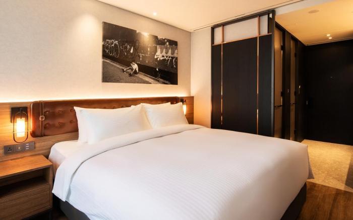 At Mercure Ambassador Seoul Hongdae, exceptional service and top-notch amenities create a memorable experience for guests. Complimentary internet access is available in the hotel to ensure you stay connected during your visit. Amenities at taxi offered by Mercure Ambassador Seoul Hongdae simplify the organization of your excursions, tourist activities, and other adventures in Seoul.Continuously receive the support you require through front desk amenities such as luggage storage and safety deposit boxes.Always look your best in your preferred attire with the laundromat, dry cleaning service and laundry service provided at Mercure Ambassador Seoul Hongdae.Desire to unwind? Make the most of your visit at Mercure Ambassador Seoul Hongdae with accessible amenities such as daily housekeeping.Due to health concerns, smoking is strictly prohibited within the entire premises of hotel. Accommodations come equipped with all the conveniences required for a restful night's slumber.A selection of rooms feature linen service, blackout curtains and air conditioning to ensure your comfort and convenience.A few accommodations at Mercure Ambassador Seoul Hongdae also include unique design elements like a balcony or terrace. A few chosen rooms are equipped with television and cable TV to ensure guest amusement.In certain rooms, the hotel offers visitors access to a refrigerator and mini bar. In the hotel, certain guest bathrooms come equipped with essential bathroom amenities, such as a hair dryer, toiletries and bathrobes, ensuring a comfortable stay for guests. A delightful breakfast is the perfect way to begin your day, and at Mercure Ambassador Seoul Hongdae, you can always indulge in a scrumptious meal on-site.Allow your journey to be free from the pangs of hunger! On-site eateries offer delicious and accessible meal choices.An evening spent at hotel's bar can offer as much enjoyment as venturing out with your fellow travelers.At Mercure Ambassador Seoul Hongdae, guests can take pleasure in the delightful recreational amenities provided for their entertainment. At the hotel fitness center, you have the option to engage in your daily exercise routine or simply alleviate your jet lag by breaking a sweat.