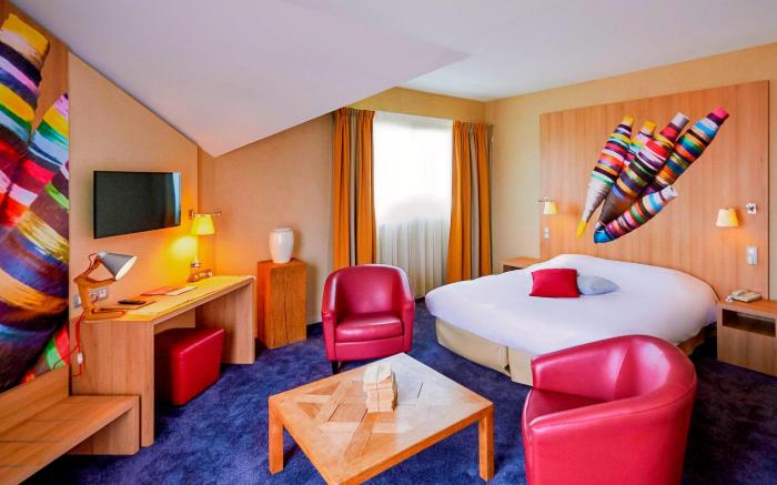 Ibis Styles Cholet provides flawless service and all the necessary facilities for visitors. Stay connected with your associates, as complimentary Wi-Fi is available during your entire visit. When arriving by car, you'll be grateful for the on-site complimentary parking at hotel. The hotel offers reception amenities including luggage storage and safety deposit boxes to ensure a comfortable stay for guests.Should you require assistance, the ticket service and tours can also aid in booking tickets and securing reservations at the finest shows and events in the vicinity. Whether it's an extended stay or simply needing fresh attire, dry cleaning service and laundry service provided by hotel ensures your cherished travel garments stay spotless and accessible. Your stay will be comfortable with the presence of room service and daily housekeeping as an in-room amenity for your relaxation and enjoyment. To ensure the well-being and convenience of all visitors, smoking is strictly prohibited throughout the entire hotel.In order to ensure the utmost level of relaxation, the guestrooms feature an inviting design and are equipped with all basic necessities, creating a delightful stay experience.To ensure a pleasant stay, a selection of rooms at hotel come furnished with blackout curtains and air conditioning, all designed with your ease in mind.In select rooms, visitors can enjoy a touch of amusement with the availability of television and cable TV for their entertainment needs. Rest assured, quenching your thirst is not a concern with instant coffee available in select accommodations.Understanding the significance of bathroom facilities in enhancing visitor contentment, hotel offers a hair dryer and toiletries within a few chosen chambers. Each day, arise to a delightful complimentary morning meal at ibis Styles Cholet. Various excellent meal offerings at hotel ensure that enticing and easily accessible options are constantly available.Upon your arrival, don't miss experiencing bar for enjoyable in-house evening entertainment.