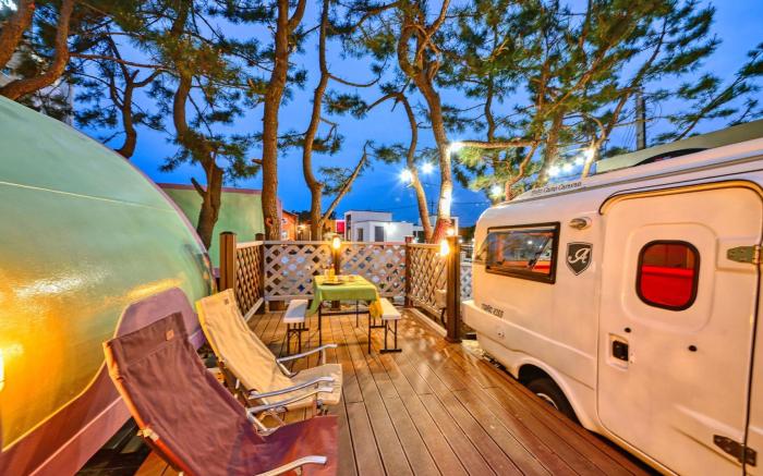 At Gangneung Good Camping, exceptional service and top-notch amenities create a memorable experience for guests.For guests with their own vehicle, parking facilities are provided. Accommodations come equipped with all the conveniences required for a restful night's slumber.In certain chosen rooms, a refrigerator is conveniently available for your use. Are you inclined to prepare your own dishes? You will surely appreciate having the on-site BBQ facilities available. At Gangneung Good Camping, guests can take pleasure in the delightful recreational amenities provided for their entertainment. At the caravan park, a wide range of enjoyable activities ensures that there's never a dull moment during your visit. Don't miss out on the easily reachable beach in the vicinity.