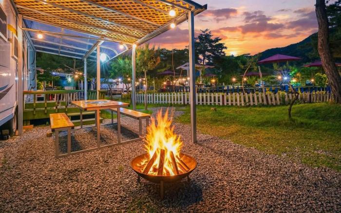 Great care is taken to ensure guests experience comfort through top-notch services and amenities. When arriving by car, take advantage of the caravan park's convenient on-site parking facilities. In order to ensure the utmost level of relaxation, the guestrooms feature an inviting design and are equipped with all basic necessities, creating a delightful stay experience.Rest assured, quenching your thirst is not a concern with a refrigerator available in select accommodations. You'll be pleased to know that select guest bathrooms offer bathroom amenities such as a hair dryer, ensuring a comfortable stay. Visitors wishing to create their personal culinary delights will appreciate the on-site BBQ facilities provided at this establishment.Throughout the day, engage in the entertaining activities available at Gapeyong Donghwa Caravan.Unwind by the pool at caravan park and cherish a leisurely moment.