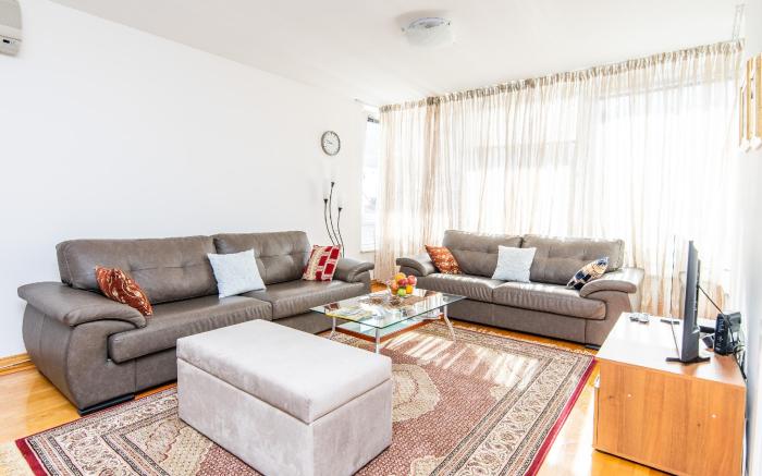 Modern 2BDR apartment in the center- FREE PARKING provides flawless service and all the necessary facilities for visitors.When arriving by car, you'll be grateful for the on-site complimentary parking at apartment. Whether it's an extended stay or simply needing fresh attire, laundromat, dry cleaning service and laundry service provided by apartment ensures your cherished travel garments stay spotless and accessible. In order to ensure the utmost level of relaxation, the guestrooms feature an inviting design and are equipped with all basic necessities, creating a delightful stay experience.To ensure a pleasant stay, a selection of rooms at apartment come furnished with linen service and air conditioning, all designed with your ease in mind. In select rooms, visitors can enjoy a touch of amusement with the availability of television and cable TV for their entertainment needs.Within specific rooms, instant coffee and instant tea is conveniently available for your use. Understanding the significance of bathroom facilities in enhancing visitor contentment, apartment offers a hair dryer and toiletries within a few chosen chambers.