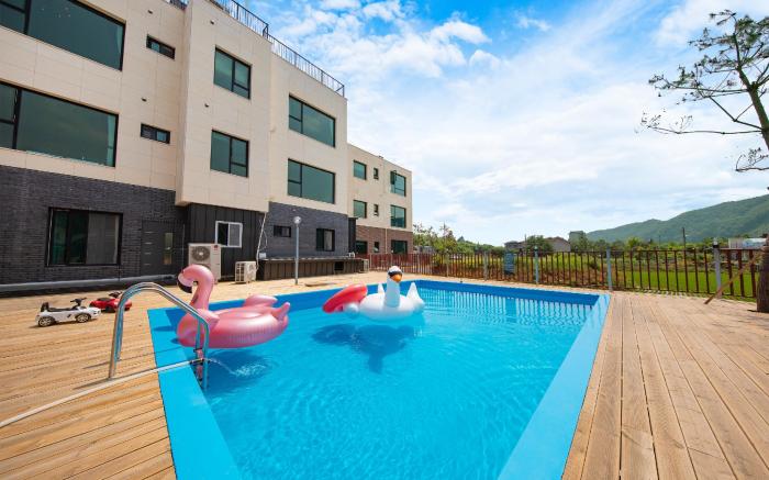Great care is taken to ensure guests experience comfort through top-notch services and amenities.Remain linked during your visit by utilizing the complimentary internet access available.Parking is accessible, supplied by the pension for guests who arrive by car. Do you possess exceptional culinary skills? Prepare your meals personally within the pension at its BBQ facilities. Indulge in the numerous pursuits available at Namiseom 2020 Spa Poolvilla. Treat and spoil yourself by taking a trip to spa.