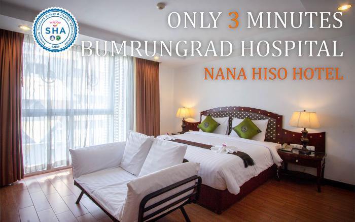 At Nana Hiso Hotel, exceptional service and top-notch amenities create a memorable experience for guests.Complimentary internet access is available in the hotel to ensure you stay connected during your visit. Amenities at taxi offered by Nana Hiso Hotel simplify the organization of your excursions, tourist activities, and other adventures in Bangkok.Complimentary parking is available for guests.Continuously receive the support you require through front desk amenities such as concierge service, luggage storage and safety deposit boxes. At the hotel, their tours can even assist you in booking tickets and securing reservations for leisure activities and adventures. Always look your best in your preferred attire with the dry cleaning service and laundry service provided at Nana Hiso Hotel. Desire to unwind? Make the most of your visit at Nana Hiso Hotel with accessible amenities such as daily housekeeping.For the health and well-being of all guests and staff, smoking is restricted exclusively to assigned zones. Accommodations come equipped with all the conveniences required for a restful night's slumber.A selection of rooms feature linen service, blackout curtains and air conditioning to ensure your comfort and convenience. A few accommodations in Nana Hiso Hotel incorporate separate living room and balcony or terrace into their architectural arrangement.A few chosen rooms are equipped with daily newspaper, television and cable TV to ensure guest amusement.In certain rooms, the hotel offers visitors access to a refrigerator, bottled water, a coffee or tea maker, instant coffee and instant tea. In the hotel, certain guest bathrooms come equipped with essential bathroom amenities, such as a hair dryer, toiletries and bathrobes, ensuring a comfortable stay for guests. At Nana Hiso Hotel, guests can take pleasure in the delightful recreational amenities provided for their entertainment. Conclude your days in complete tranquility by paying a visit to massage and hot tub for ultimate relaxation.