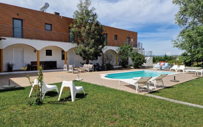 At Casa das Portas, exceptional service and top-notch amenities create a memorable experience for guests. Complimentary internet access is available in the hotel to ensure you stay connected during your visit. Amenities at taxi offered by Casa das Portas simplify the organization of your excursions, tourist activities, and other adventures in Azinhaga Do Ribatejo.Complimentary parking is available for guests. Continuously receive the support you require through front desk amenities such as luggage storage. At the hotel, their tours can even assist you in booking tickets and securing reservations for leisure activities and adventures.Desire to unwind? Make the most of your visit at Casa das Portas with accessible amenities such as daily housekeeping. Due to health concerns, smoking is strictly prohibited within the entire premises of hotel. Accommodations come equipped with all the conveniences required for a restful night's slumber. A selection of rooms feature linen service, blackout curtains and air conditioning to ensure your comfort and convenience.A few chosen rooms are equipped with in-room video streaming and cable TV to ensure guest amusement.In certain rooms, the hotel offers visitors access to a refrigerator and a coffee or tea maker.Casa das Portas offers a hair dryer and toiletries in the restrooms of specific accommodations. A delightful breakfast is the perfect way to begin your day, and at Casa das Portas, you can always indulge in a scrumptious meal on-site. An evening spent at hotel's bar can offer as much enjoyment as venturing out with your fellow travelers. At Casa das Portas, guests can take pleasure in the delightful recreational amenities provided for their entertainment. At Casa das Portas, a wide array of amenities guarantees a fulfilling experience throughout your visit. Make your holiday truly memorable by taking a rejuvenating plunge into the pool.