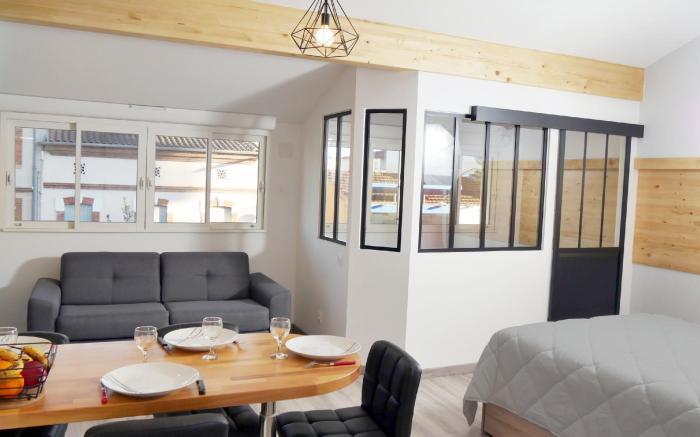 At Appart Hôtel Albi, exceptional service and top-notch amenities create a memorable experience for guests. Remain linked during your visit by utilizing the complimentary internet access available. Parking is accessible, supplied by the apartment for guests who arrive by car. Reception services featuring express check-in or check-out are available to cater to your requirements. The apartment is completely smoke-free. Crafted for coziness, every guestroom provides an array of features, guaranteeing a tranquil night's sleep while maintaining the level of comfort.For a more enjoyable stay, select rooms at apartment are equipped with linen service and blackout curtains.For certain chosen rooms, guests can enjoy in-room amusement like television and cable TV as a part of their stay.Rest assured that your hydration needs will be met, as some guestrooms are equipped with a refrigerator and a coffee or tea maker. It is worth noting that certain guest bathrooms feature a hair dryer and toiletries for your convenience.