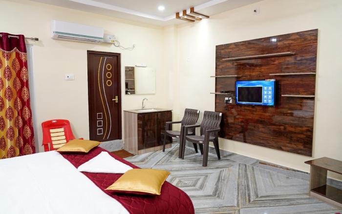 Devansh Bhanu Residency DBR provides flawless service and all the necessary facilities for visitors.Remain linked during your visit by utilizing the complimentary internet access available.Prior to your check-in date, you can arrange airport transportation services, guaranteeing a seamless and efficient experience for both arrival and departure. Services offered by taxi and shuttle at the serviced apartment ensure effortless exploration of Srikalahasti. The serviced apartment offers complimentary parking for guests who arrive with their own mode of transport.Effortlessly plan your daily activities and travel requirements with concierge service, express check-in or check-out and luggage storage provided by the front desk services.Repeatedly enjoy your best-loved attire with the aid of the laundry service available at Devansh Bhanu Residency DBR. During leisurely days and evenings, in-room amenities such as 24-hour room service, room service and daily housekeeping enable you to maximize your stay in the room. The serviced apartment is completely smoke-free. In limited designated zones, smoking is exclusively permitted. Crafted for coziness, every guestroom provides an array of features, guaranteeing a tranquil night's sleep while maintaining the level of comfort. For a more enjoyable stay, select rooms at serviced apartment are equipped with linen service and air conditioning. At Devansh Bhanu Residency DBR, a selection of rooms can be found that showcase unique design elements such as a balcony or terrace. In select rooms, the serviced apartment offers visitors access to bottled water. Maintain your cleanliness and feel revitalized using toiletries available in select guest restrooms. Begin your day on a delightful note with a scrumptious complimentary breakfast, consistently served at Devansh Bhanu Residency DBR. Begin your holiday mornings right with your essential cup of coffee, offered daily at the cafe on-site. During your visit, indulge in a range of delightful culinary choices at serviced apartment to enhance your experience. Concerned about your dining preferences? Fret not! Devansh Bhanu Residency DBR offers an assortment of culinary varieties featuring halal choices, catering to all tastes.