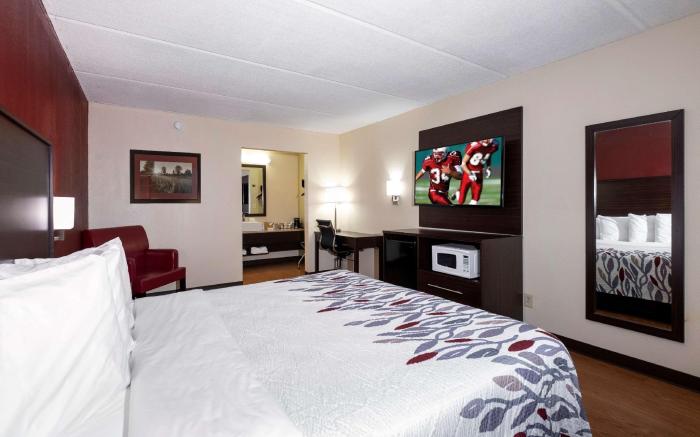 At Red Roof Inn Kenly – I-95, exceptional service and top-notch amenities create a memorable experience for guests.Complimentary internet access is available in the hotel to ensure you stay connected during your visit. Complimentary parking is available for guests.At the hotel, utilize the convenient laundromat to maintain your preferred travel attire fresh, allowing you to pack lighter. Desire to unwind? Make the most of your visit at Red Roof Inn Kenly – I-95 with accessible amenities such as daily housekeeping. Due to health concerns, smoking is strictly prohibited within the entire premises of hotel.For the health and well-being of all guests and staff, smoking is restricted exclusively to assigned zones. Accommodations come equipped with all the conveniences required for a restful night's slumber. A selection of rooms feature linen service and blackout curtains to ensure your comfort and convenience.A number of rooms feature cable TV for guest amusement and enjoyment. In certain rooms, the hotel offers visitors access to a refrigerator and a coffee or tea maker. In the hotel, certain guest bathrooms come equipped with essential bathroom amenities, such as a hair dryer and toiletries, ensuring a comfortable stay for guests. At Red Roof Inn Kenly – I-95, affordable refreshments are available 24/7 through the convenient vending machines on-site.
