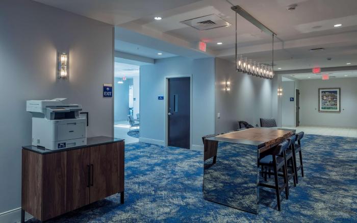 Great care is taken to ensure guests experience comfort through top-notch services and amenities. Remain linked during your visit by utilizing the complimentary internet access available.Parking is accessible, supplied by the hotel for guests who arrive by car.Effortlessly plan your daily activities and travel requirements with luggage storage and safety deposit boxes provided by the front desk services. Repeatedly enjoy your best-loved attire with the aid of the laundry service available at Scholar State College, Tapestry Collection by Hilton. Need some relaxation? Your room features daily housekeeping to make your stay even more comfortable and enjoyable. The hotel is completely smoke-free. Crafted for coziness, every guestroom provides an array of features, guaranteeing a tranquil night's sleep while maintaining the level of comfort. For an elevated experience at hotel, select rooms are equipped with blackout curtains to improve your stay. For certain chosen rooms, guests can enjoy in-room amusement like television, in-room video streaming and cable TV as a part of their stay. Rest assured that your hydration needs will be met, as some guestrooms are equipped with a refrigerator and instant tea.Maintain your cleanliness and comfort using a hair dryer and toiletries available in select guest restrooms. Begin your holiday mornings right with your essential cup of coffee, offered daily at the cafe on-site. During your visit, indulge in a range of delightful culinary choices at hotel to enhance your experience. Experience a fantastic evening effortlessly! Relish an entertaining night without venturing beyond the confines of the bar.Indulge in the numerous pursuits available at Scholar State College, Tapestry Collection by Hilton. Eliminate those holiday calories by stopping by hotel and making use of their well-equipped exercise amenities.