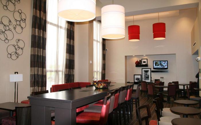 Hampton Inn & Suites Detroit/Airport-Romulus offers top-notch services and amenities, ensuring guests experience utmost comfort. Share your photos and respond to emails at your convenience, thanks to the free Wi-Fi internet access offered by hotel.Should you require transportation to or from the airport, hotel is able to organize it prior to your arrival date.Shuttle offerings at the hotel enhance the ease of discovering Detroit (MI).Reception services such as luggage storage and safety deposit boxes are available to accommodate your requirements.Room amenities feature daily housekeeping, allowing you to unwind and make the most of your visit.The hotel maintains a completely smoke-free zone, providing a breathable atmosphere.Each accommodation at Hampton Inn & Suites Detroit/Airport-Romulus is thoughtfully created and adorned to provide visitors with a comfortable, home-like atmosphere. In select rooms of the hotel, guests can enjoy the advantage of having blackout curtains available for their convenience.In select rooms, guests at the hotel can enjoy top-notch in-room entertainment with television and in-room video streaming available for their convenience.Rest assured, in a few chosen rooms, the presence of instant tea can be found.Understanding the significance of bathroom amenities in enhancing guest contentment, the hotel offers a hair dryer within certain chosen rooms. Begin your holiday on a high note. At Hampton Inn & Suites Detroit/Airport-Romulus, your mornings are greeted with a delightful, free breakfast.Indulge in the numerous pursuits available at Hampton Inn & Suites Detroit/Airport-Romulus.Unwind after your day by exploring the hot tub and find warmth and relaxation.Each day at hotel, immerse yourself in the invigorating waters of the pool, perfect for a rejuvenating plunge or a series of revitalizing laps.For individuals who don't want to skip their exercise routine, visiting the hotel fitness center ensures you maintain your vitality and wellness.