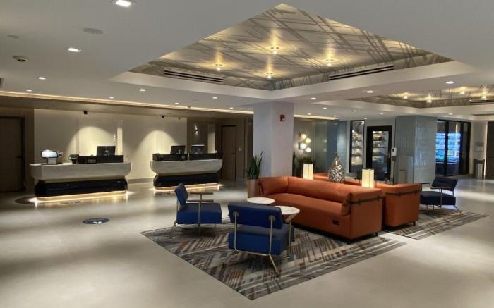 DoubleTree by Hilton San Francisco South Airport Blvd provides flawless service and all the necessary facilities for visitors.Remain linked during your visit by utilizing the complimentary internet access available. Prior to your check-in date, you can arrange airport transportation services, guaranteeing a seamless and efficient experience for both arrival and departure. Parking is accessible, supplied by the hotel for guests who arrive by car. Effortlessly plan your daily activities and travel requirements with luggage storage and safety deposit boxes provided by the front desk services. The hotel is completely smoke-free. Crafted for coziness, every guestroom provides an array of features, guaranteeing a tranquil night's sleep while maintaining the level of comfort.Expand your in-room entertainment choices with various amenities, such as television offered in certain accommodations.In select rooms, the hotel offers visitors access to instant tea. During your visit, indulge in a range of delightful culinary choices at hotel to enhance your experience.Experience a fantastic evening effortlessly! Relish an entertaining night without venturing beyond the confines of the bar.Experience unparalleled comfort as groceries can be brought right to your room at DoubleTree by Hilton San Francisco South Airport Blvd through their distinctive delivery assistance. During your stay at hotel, an array of engaging activities and amenities guarantees a delightful experience.Eliminate those holiday calories by stopping by hotel and making use of their well-equipped exercise amenities.