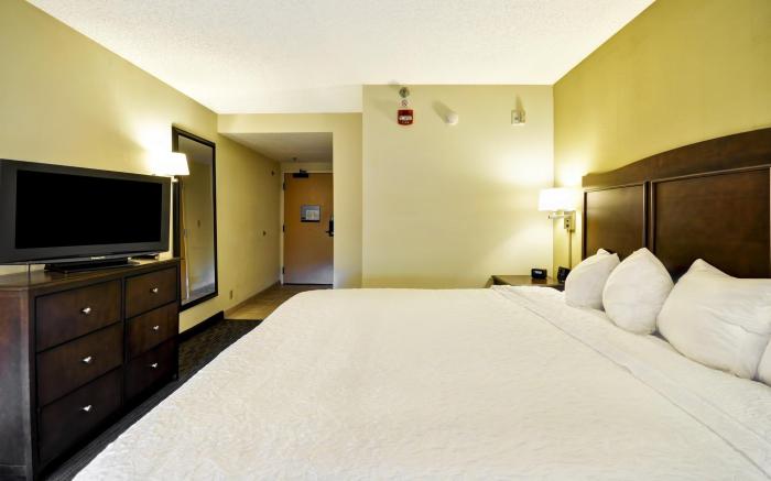 Hampton Inn Kansas City-Airport offers top-notch services and amenities, ensuring guests experience utmost comfort.Share your photos and respond to emails at your convenience, thanks to the free Wi-Fi internet access offered by hotel.Should you require transportation to or from the airport, hotel is able to organize it prior to your arrival date.Room amenities feature daily housekeeping, allowing you to unwind and make the most of your visit.The hotel maintains a completely smoke-free zone, providing a breathable atmosphere. Each accommodation at Hampton Inn Kansas City-Airport is thoughtfully created and adorned to provide visitors with a comfortable, home-like atmosphere. In select rooms of the hotel, guests can enjoy the advantage of having blackout curtains available for their convenience.In select rooms, guests at the hotel can enjoy top-notch in-room entertainment with television and cable TV available for their convenience. Rest assured, in a few chosen rooms, the presence of instant tea can be found.Maintain your cleanliness and comfort using a hair dryer and toiletries available in select guest restrooms. Begin your holiday on a high note. At Hampton Inn Kansas City-Airport, your mornings are greeted with a delightful, free breakfast.Indulge in the numerous pursuits available at Hampton Inn Kansas City-Airport.Each day at hotel, immerse yourself in the invigorating waters of the pool, perfect for a rejuvenating plunge or a series of revitalizing laps.For individuals who don't want to skip their exercise routine, visiting the hotel fitness center ensures you maintain your vitality and wellness.