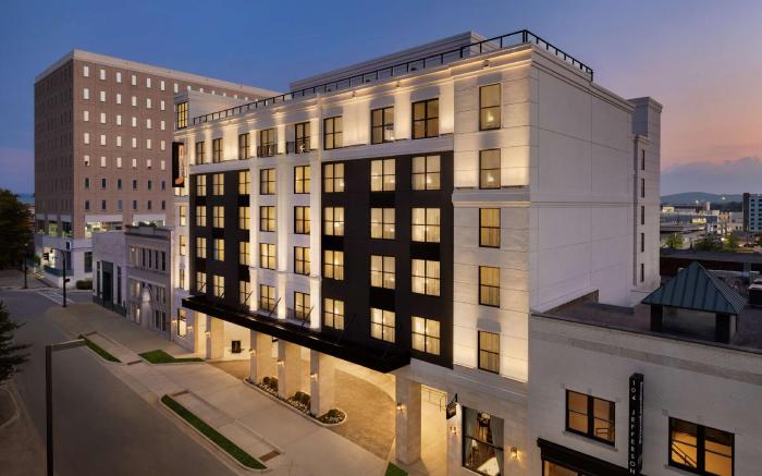 At 106 Jefferson Huntsville, Curio Collection by Hilton, exceptional service and top-notch amenities create a memorable experience for guests. Remain linked during your visit by utilizing the complimentary internet access available.Discovering Huntsville (AL) becomes even more accessible, thanks to the car hire amenities provided at the hotel. Parking is accessible, supplied by the hotel for guests who arrive by car.Effortlessly plan your daily activities and travel requirements with concierge service, luggage storage and safety deposit boxes provided by the front desk services. During leisurely days and evenings, in-room amenities such as room service and daily housekeeping enable you to maximize your stay in the room.The hotel is completely smoke-free. Crafted for coziness, every guestroom provides an array of features, guaranteeing a tranquil night's sleep while maintaining the level of comfort. For an elevated experience at hotel, select rooms are equipped with blackout curtains to improve your stay. Expand your in-room entertainment choices with various amenities, such as television offered in certain accommodations. In select rooms, the hotel offers visitors access to instant tea. It is worth noting that certain guest bathrooms feature a hair dryer and toiletries for your convenience. During your visit, indulge in a range of delightful culinary choices at hotel to enhance your experience. Experience a fantastic evening effortlessly! Relish an entertaining night without venturing beyond the confines of the bar. During your stay at hotel, an array of engaging activities and amenities guarantees a delightful experience. Treat and spoil yourself by taking a trip to salon.Eliminate those holiday calories by stopping by hotel and making use of their well-equipped exercise amenities.