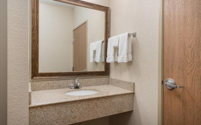 AmericInn by Wyndham Anamosa offers top-notch services and amenities, ensuring guests experience utmost comfort.Complimentary internet access is available in the hotel to ensure you stay connected during your visit.Complimentary parking is available for guests.Continuously receive the support you require through front desk amenities such as express check-in or check-out and luggage storage. Chilly nights become more delightful than balmy ones, as you snuggle near the hotel's inviting hearth. Always look your best in your preferred attire with the laundromat and laundry service provided at AmericInn by Wyndham Anamosa.Craving relaxation? In-room amenities such as room service and daily housekeeping allow you to maximize your time spent inside the room. Due to health concerns, smoking is strictly prohibited within the entire premises of hotel. Accommodations come equipped with all the conveniences required for a restful night's slumber.A selection of rooms feature linen service and air conditioning to ensure your comfort and convenience.A number of rooms feature television for guest amusement and enjoyment.In certain rooms, the hotel offers visitors access to a refrigerator and a coffee or tea maker. AmericInn by Wyndham Anamosa offers a hair dryer and toiletries in the restrooms of specific accommodations. A delightful breakfast is the perfect way to begin your day, and at AmericInn by Wyndham Anamosa, you can always indulge in a scrumptious meal on-site.Allow your journey to be free from the pangs of hunger! On-site eateries offer delicious and accessible meal choices. An evening spent at hotel's bar can offer as much enjoyment as venturing out with your fellow travelers. At AmericInn by Wyndham Anamosa, affordable refreshments are available 24/7 through the convenient vending machines on-site.AmericInn by Wyndham Anamosa provides a superb assortment of leisure amenities for guests to enjoy. Conclude your days in complete tranquility by paying a visit to hot tub and spa for ultimate relaxation. At the hotel fitness center, you have the option to engage in your daily exercise routine or simply alleviate your jet lag by breaking a sweat.