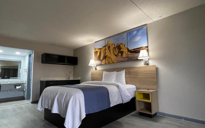 Days Inn by Wyndham Salina South offers top-notch services and amenities, ensuring guests experience utmost comfort. Maintain seamless communication using the complimentary Wi-Fi at hotel.For visitors traveling by automobile, complimentary parking is available.Craving relaxation? Make the most of your stay at the Days Inn by Wyndham Salina South with convenient amenities like room service and daily housekeeping at your disposal.Kindly note that smoking is prohibited in the hotel to ensure fresher air for all visitors. At Days Inn by Wyndham Salina South, every guestroom is provided with convenient amenities and fittings to ensure a comfortable stay.Enhance your experience at hotel with the knowledge that certain rooms are equipped with linen service and air conditioning for your convenience. Certain rooms offer in-room amusement features such as the television for your enjoyment. In select rooms at the hotel, a refrigerator is available for those moments when it seems necessary. In the hotel, certain guest bathrooms come equipped with essential bathroom amenities, such as a hair dryer and toiletries, ensuring a comfortable stay for guests. Begin your day carefree at Days Inn by Wyndham Salina South, as complimentary breakfast is offered for your convenience.At the hotel, an assortment of easily accessible and delicious meal choices are available to satisfy your appetite whenever it strikes. At the hotel, discerning guests can also enjoy on-site culinary facilities like BBQ facilities tailored to their preferences. Days Inn by Wyndham Salina South provides a superb assortment of leisure amenities for guests to enjoy.Discover the fitness amenities at hotel to maintain your health and strength during your getaway.