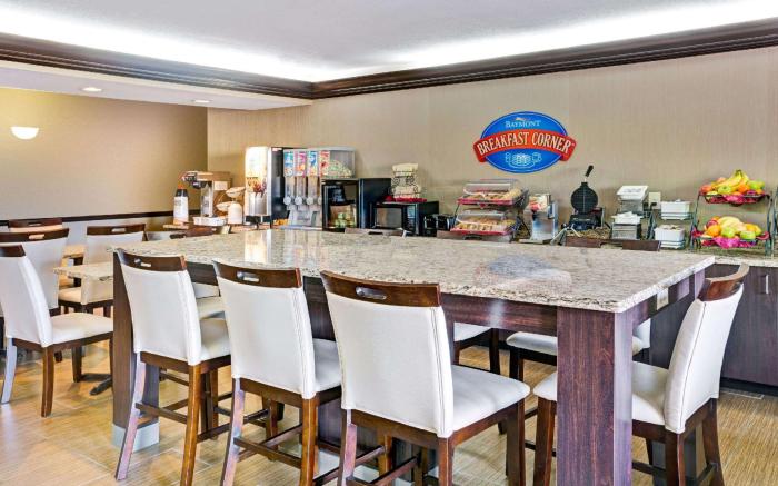 Great care is taken to ensure guests experience comfort through top-notch services and amenities.Stay connected with your associates, as complimentary Wi-Fi is available during your entire visit. The hotel offers car hire amenities to assist you in discovering your desired offerings in Harrodsburg (KY).When arriving by car, you'll be grateful for the on-site complimentary parking at hotel. The hotel offers reception amenities including express check-in or check-out and luggage storage to ensure a comfortable stay for guests.Should you require assistance, the ticket service and tours can also aid in booking tickets and securing reservations at the finest shows and events in the vicinity.The hotel also features a fireplace, providing a cozy ambience during cool evenings. Whether it's an extended stay or simply needing fresh attire, laundromat, dry cleaning service and laundry service provided by hotel ensures your cherished travel garments stay spotless and accessible. Your stay will be comfortable with the presence of room service and daily housekeeping as an in-room amenity for your relaxation and enjoyment. To ensure the well-being and convenience of all visitors, smoking is strictly prohibited throughout the entire hotel. In order to ensure the utmost level of relaxation, the guestrooms feature an inviting design and are equipped with all basic necessities, creating a delightful stay experience.To ensure your satisfaction, certain rooms in the hotel come fitted with air conditioning for a more pleasant stay. In select rooms, visitors can enjoy a touch of amusement with the availability of television and cable TV for their entertainment needs. Within specific rooms, a refrigerator and a coffee or tea maker is conveniently available for your use.Understanding the significance of bathroom facilities in enhancing visitor contentment, hotel offers a hair dryer and toiletries within a few chosen chambers. Each day, arise to a delightful complimentary morning meal at Clarion Pointe Harrodsburg-Danville.How about kicking off each day of your getaway with a delicious cup of coffee? At the hotel, relish in the invigorating taste of a freshly brewed, excellent coffee.Various excellent meal offerings at hotel ensure that enticing and easily accessible options are constantly available. Throughout the day and night, guests can enjoy light refreshments with the hotel offering vending machines.Throughout the day, engage in the entertaining activities available at Clarion Pointe Harrodsburg-Danville.Unwind effortlessly each day by exploring the spa, conveniently situated within the hotel. Guests who enjoy maintaining their fitness regimen while on holiday can visit the fitness center provided by hotel.