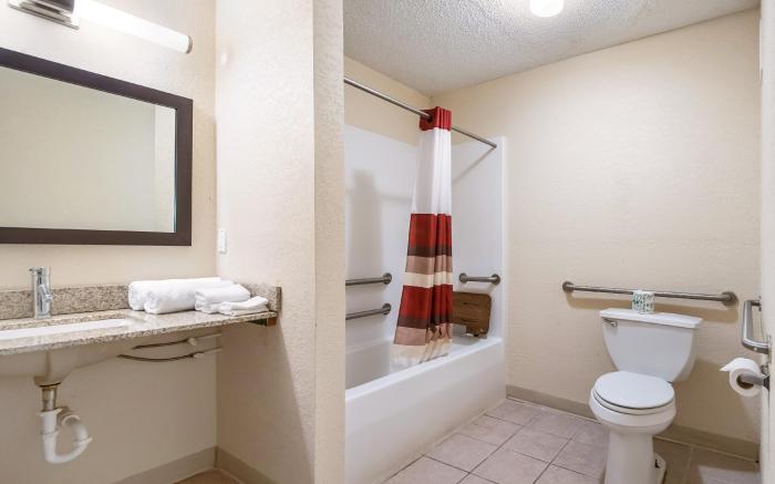 Red Roof Inn Anderson, IN offers top-notch services and amenities, ensuring guests experience utmost comfort. Share your photos and respond to emails at your convenience, thanks to the free Wi-Fi internet access offered by hotel. Services offered by car hire and shuttle at the hotel ensure effortless exploration of Anderson (IN). Visitors can take advantage of complimentary parking directly at the hotel.The accommodating team at the reception will aid you with amenities such as safety deposit boxes. Room amenities like room service and daily housekeeping contribute to making a perfect selection for your stay. Minor items you neglected to bring won't cause major issues! Simply visit convenience stores to acquire what's necessary.The hotel maintains a completely smoke-free zone, providing a breathable atmosphere. Smoking is limited to specified smoking zones. Each accommodation at Red Roof Inn Anderson, IN is thoughtfully created and adorned to provide visitors with a comfortable, home-like atmosphere.In certain rooms, the hotel offers linen service and blackout curtains for guest convenience and satisfaction.In select rooms, guests can enjoy a touch of amusement with the availability of cable TV for their entertainment.Rest assured, in a few chosen rooms, you will find the convenience of a refrigerator, a coffee or tea maker, instant coffee and instant tea at your disposal.Red Roof Inn Anderson, IN offers a hair dryer and toiletries in the restrooms of specific accommodations. Experience an unforgettable evening with your fellow travelers just a short distance away, at hotel's casino.Throughout the day and evening, grab a bite to eat from hotel's self-service vending machines whenever you please. Red Roof Inn Anderson, IN provides a superb assortment of leisure amenities for guests to enjoy.Experience the finest of winter by enjoying daily ski adventures, effortlessly accessible with ski slopes conveniently located on the premises.Unwind after your day by exploring the salon and find warmth and relaxation.