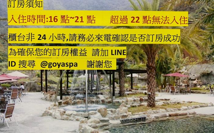 Great care is taken to ensure guests experience comfort through top-notch services and amenities.Stay connected with your associates, as complimentary Wi-Fi is available during your entire visit.The minsu offers shuttle amenities to assist you in discovering your desired offerings in Taichung. When arriving by car, you'll be grateful for the on-site complimentary parking at minsu.The minsu offers reception assistance, including luggage storage, to ensure guest satisfaction. To ensure the well-being and convenience of all visitors, smoking is strictly prohibited throughout the entire minsu. Smoking is permitted solely in the specified smoking zones allocated by minsu. In order to ensure the utmost level of relaxation, the guestrooms feature an inviting design and are equipped with all basic necessities, creating a delightful stay experience.To ensure a pleasant stay, a selection of rooms at minsu come furnished with linen service, blackout curtains and air conditioning, all designed with your ease in mind. Several chosen accommodations at Goya Spring Resort have a balcony or terrace incorporated into the room design.In select rooms, visitors can enjoy a touch of amusement with the availability of television and cable TV for their entertainment needs. Within specific rooms, a refrigerator, bottled water, a coffee or tea maker, instant coffee and instant tea is conveniently available for your use.Understanding the significance of bathroom facilities in enhancing visitor contentment, minsu offers a hair dryer, toiletries and bathrobes within a few chosen chambers. Each day, arise to a delightful complimentary morning meal at Goya Spring Resort. How about kicking off each day of your getaway with a delicious cup of coffee? At the minsu, relish in the invigorating taste of a freshly brewed, excellent coffee.Various excellent meal offerings at minsu ensure that enticing and easily accessible options are constantly available.Throughout the day, engage in the entertaining activities available at Goya Spring Resort.Unwind and conclude each day delightfully by stopping by hot tub, solarium, steam room, spa and sauna, ensuring a soothing experience.