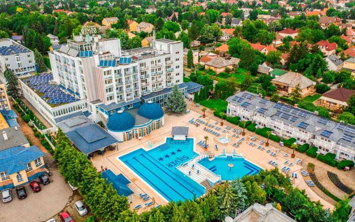 Hotel Silver **** provides flawless service and all the necessary facilities for visitors.Stay connected with your associates, as complimentary Wi-Fi is available during your entire visit.To facilitate your arrival and departure, you can pre-book airport transfer services prior to checking in. The hotel offers shuttle amenities to assist you in discovering your desired offerings in Hajduszoboszlo.When arriving by car, take advantage of the hotel's convenient on-site parking facilities.The hotel offers reception amenities including concierge service, luggage storage and safety deposit boxes to ensure a comfortable stay for guests. Whether you're here for an extended stay or simply require fresh garments, the hotel ensures your cherished travel attire remains spotless and accessible with the convenience of laundry service located on the premises.Your stay will be comfortable with the presence of room service and daily housekeeping as an in-room amenity for your relaxation and enjoyment. To ensure the well-being and convenience of all visitors, smoking is strictly prohibited throughout the entire hotel. Smoking is permitted solely in the specified smoking zones allocated by hotel.In order to ensure the utmost level of relaxation, the guestrooms feature an inviting design and are equipped with all basic necessities, creating a delightful stay experience. To ensure a pleasant stay, a selection of rooms at hotel come furnished with linen service, blackout curtains and air conditioning, all designed with your ease in mind.At Hotel Silver ****, various room configurations are available, featuring separate living room and balcony or terrace in some rooms.In select rooms, visitors can enjoy a touch of amusement with the availability of television and cable TV for their entertainment needs.Within specific rooms, a refrigerator and mini bar is conveniently available for your use. Understanding the significance of bathroom facilities in enhancing visitor contentment, hotel offers a hair dryer, toiletries and bathrobes within a few chosen chambers. Start your day stress-free at Hotel Silver **** as breakfast is made available for you on the premises. How about kicking off each day of your getaway with a delicious cup of coffee? At the hotel, relish in the invigorating taste of a freshly brewed, excellent coffee. Various excellent meal offerings at hotel ensure that enticing and easily accessible options are constantly available. Upon your arrival, don't miss experiencing bar for enjoyable in-house evening entertainment. Throughout the day, engage in the entertaining activities available at Hotel Silver ****.Unwind and conclude each day delightfully by stopping by massage, hot tub, solarium, steam room, spa and sauna, ensuring a soothing experience.Unwind by the pool at hotel and cherish a leisurely moment. Enjoy a refreshing beverage al fresco at hotel's poolside bar savoring your preferred concoction.Guests who enjoy maintaining their fitness regimen while on holiday can visit the fitness center provided by hotel.