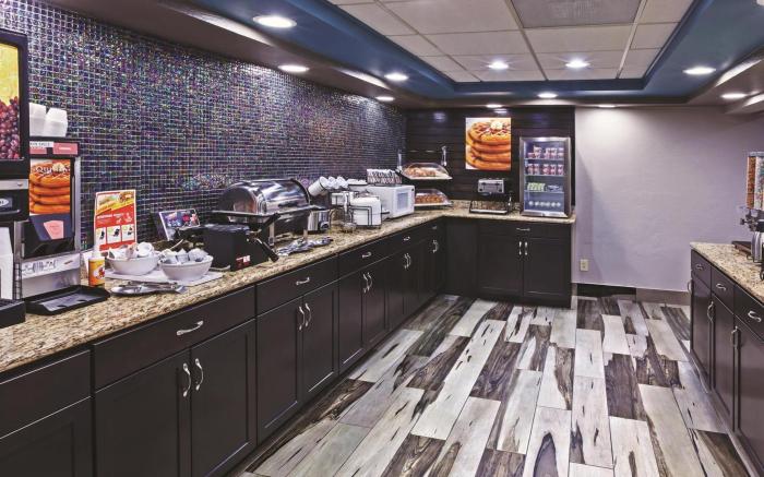 La Quinta Inn & Suites by Wyndham Denison - N. Lake Texoma provides flawless service and all the necessary facilities for visitors. Stay connected with your associates, as complimentary Wi-Fi is available during your entire visit. The hotel offers shuttle amenities to assist you in discovering your desired offerings in Denison (TX).When arriving by car, you'll be grateful for the on-site complimentary parking at hotel.The hotel offers reception amenities including express check-in or check-out and luggage storage to ensure a comfortable stay for guests. Whether it's an extended stay or simply needing fresh attire, dry cleaning service and laundry service provided by hotel ensures your cherished travel garments stay spotless and accessible.The hotel's daily housekeeping ensures an excellent option for your stay. Need something at the last minute? The convenience stores has you covered, ensuring your requirements are met without any inconvenience.To ensure the well-being and convenience of all visitors, smoking is strictly prohibited throughout the entire hotel. Smoking is permitted solely in the specified smoking zones allocated by hotel.In order to ensure the utmost level of relaxation, the guestrooms feature an inviting design and are equipped with all basic necessities, creating a delightful stay experience.To ensure your satisfaction, certain rooms in the hotel come fitted with air conditioning for a more pleasant stay. Selected rooms offer in-room amusement like television as a source of entertainment for guests to enjoy.Rest assured, quenching your thirst is not a concern with a refrigerator available in select accommodations.Understanding the significance of bathroom facilities in enhancing visitor contentment, hotel offers a hair dryer and toiletries within a few chosen chambers. Each day, arise to a delightful complimentary morning meal at La Quinta Inn & Suites by Wyndham Denison - N. Lake Texoma.Various excellent meal offerings at hotel ensure that enticing and easily accessible options are constantly available.Throughout the day, engage in the entertaining activities available at La Quinta Inn & Suites by Wyndham Denison - N. Lake Texoma.Unwind by the pool at hotel and cherish a leisurely moment. Guests who enjoy maintaining their fitness regimen while on holiday can visit the fitness center provided by hotel.