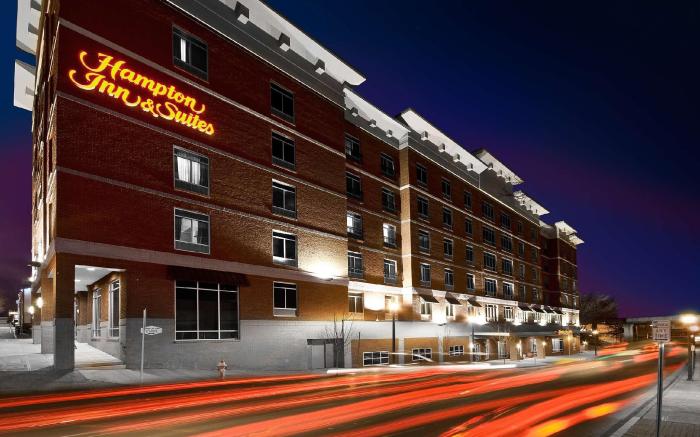 Hampton Inn & Suites Raleigh Downtown offers top-notch services and amenities, ensuring guests experience utmost comfort. Share your photos and respond to emails at your convenience, thanks to the free Wi-Fi internet access offered by hotel.Visitors can take advantage of the accessible parking options directly at the hotel.Reception services such as luggage storage and safety deposit boxes are available to accommodate your requirements.Room amenities feature daily housekeeping, allowing you to unwind and make the most of your visit. Minor items you neglected to bring won't cause major issues! Simply visit convenience stores to acquire what's necessary. The hotel maintains a completely smoke-free zone, providing a breathable atmosphere. Each accommodation at Hampton Inn & Suites Raleigh Downtown is thoughtfully created and adorned to provide visitors with a comfortable, home-like atmosphere.In select rooms, guests at the hotel can enjoy top-notch in-room entertainment with television and in-room video streaming available for their convenience. Rest assured, in a few chosen rooms, the presence of instant tea can be found.Maintain your cleanliness and comfort using a hair dryer and toiletries available in select guest restrooms. Begin your holiday on a high note. At Hampton Inn & Suites Raleigh Downtown, your mornings are greeted with a delightful, free breakfast.Indulge in the numerous pursuits available at Hampton Inn & Suites Raleigh Downtown. Each day at hotel, immerse yourself in the invigorating waters of the pool, perfect for a rejuvenating plunge or a series of revitalizing laps. For individuals who don't want to skip their exercise routine, visiting the hotel fitness center ensures you maintain your vitality and wellness.