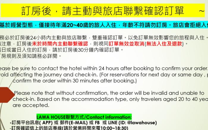 At LAWA HOUSE - Only for aged 18-40, exceptional service and top-notch amenities create a memorable experience for guests.Complimentary internet access is available in the hostel to ensure you stay connected during your visit.Due to health concerns, smoking is strictly prohibited within the entire premises of hostel.Accommodations come equipped with all the conveniences required for a restful night's slumber.A selection of rooms feature linen service, blackout curtains and air conditioning to ensure your comfort and convenience.A few accommodations at LAWA HOUSE - Only for aged 18-40 also include unique design elements like a balcony or terrace.In certain rooms, the hostel offers visitors access to a refrigerator, instant coffee and instant tea.In the hostel, certain guest bathrooms come equipped with essential bathroom amenities, such as a hair dryer and toiletries, ensuring a comfortable stay for guests.