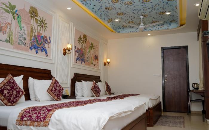 Experience an abundance of unparalleled facilities and features at Hotel Ruby. Maintain seamless communication using the complimentary Wi-Fi at hotel. Effortlessly arrange transportation to and from the airport using the hotel's airport transfer services. Discovering Jaipur becomes even more accessible, thanks to the taxi amenities provided at the hotel.For visitors traveling by automobile, complimentary parking is available. Reception assistance is offered at the hotel featuring luggage storage.At the hotel, utilize the on-site dry cleaning service and laundry service to maintain your beloved travel attire fresh, allowing you to bring fewer clothes.Craving relaxation? Make the most of your stay at the Hotel Ruby with convenient amenities like 24-hour room service, room service and daily housekeeping at your disposal. Kindly note that smoking is prohibited in the hotel to ensure fresher air for all visitors. For visitors wishing to smoke, designated smoking zones can be found. At Hotel Ruby, every guestroom is provided with convenient amenities and fittings to ensure a comfortable stay.Elevate your experience at hotel with the knowledge that certain rooms are equipped with air conditioning, ensuring a more pleasant stay for you.Certain rooms boast in-room amusement features such as television and cable TV, offering guests an enjoyable stay.In the hotel, certain guest bathrooms come equipped with essential bathroom amenities, such as toiletries and towels, ensuring a comfortable stay for guests. Begin your day with a scrumptious on-site breakfast available each morning at Hotel Ruby. At the hotel, an assortment of easily accessible and delicious meal choices are available to satisfy your appetite whenever it strikes.