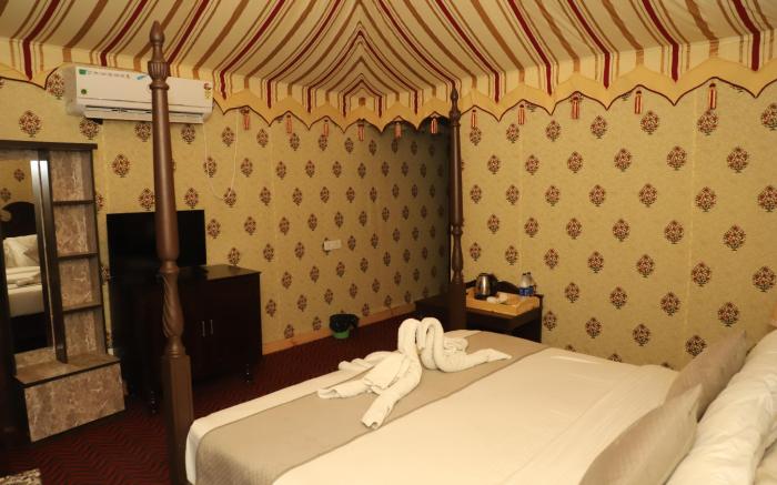 Great care is taken to ensure guests experience comfort through top-notch services and amenities. Prior to your check-in date, you can arrange airport transportation services, guaranteeing a seamless and efficient experience for both arrival and departure. Experience the wonders of Pushkar with ease by utilizing the services provided at shuttle. Parking is accessible, supplied by the tent for guests who arrive by car. Reception services featuring concierge service are available to cater to your requirements. During your stay at this fantastic tent, experience comfort and warmth from the delightful on-site fireplace on those chilly days and nights.Need some relaxation? Your room features 24-hour room service to make your stay even more comfortable and enjoyable.For minor or impromptu requirements, the convenience stores can promptly cater to them without the necessity of stepping out from the tent. The tent is completely smoke-free. Crafted for coziness, every guestroom provides an array of features, guaranteeing a tranquil night's sleep while maintaining the level of comfort. For an elevated experience at tent, select rooms are equipped with air conditioning to improve your stay. Maintain your cleanliness and feel revitalized using toiletries available in select guest restrooms. Each morning at The Glorious Hills Resort Pushkar, a scrumptious, homemade breakfast kick-starts the day.Begin your holiday mornings right with your essential cup of coffee, offered daily at the cafe on-site. For those with discerning taste buds, having an on-site BBQ facilities and shared kitchen at your disposal will undoubtedly be appreciated.Indulge in the numerous pursuits available at The Glorious Hills Resort Pushkar.Begin your holiday perfectly by taking a plunge into the swimming pool.