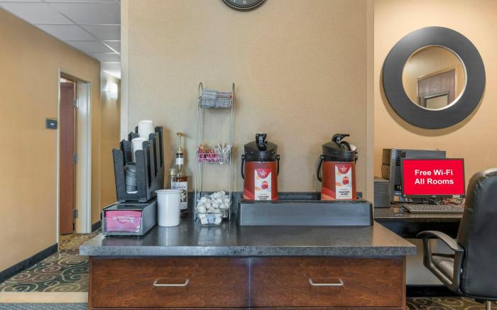 Red Roof Inn Charlestown provides flawless service and all the necessary facilities for visitors. Stay connected with your associates, as complimentary Wi-Fi is available during your entire visit.When arriving by car, you'll be grateful for the on-site complimentary parking at hotel. Whether you're here for an extended stay or simply require fresh garments, the hotel ensures your cherished travel attire remains spotless and accessible with the convenience of laundry service located on the premises.The hotel's daily housekeeping ensures an excellent option for your stay. To ensure the well-being and convenience of all visitors, smoking is strictly prohibited throughout the entire hotel. Smoking is permitted solely in the specified smoking zones allocated by hotel. In order to ensure the utmost level of relaxation, the guestrooms feature an inviting design and are equipped with all basic necessities, creating a delightful stay experience.To ensure a pleasant stay, a selection of rooms at hotel come furnished with linen service, blackout curtains and air conditioning, all designed with your ease in mind.Selected rooms offer in-room amusement like cable TV as a source of entertainment for guests to enjoy.Within specific rooms, a refrigerator and a coffee or tea maker is conveniently available for your use.Understanding the significance of bathroom facilities in enhancing visitor contentment, hotel offers a hair dryer, toiletries and towels within a few chosen chambers. Each day, arise to a delightful complimentary morning meal at Red Roof Inn Charlestown. Upon your arrival, don't miss experiencing bar for enjoyable in-house evening entertainment.Throughout the day and night, guests can enjoy light refreshments with the hotel offering vending machines.