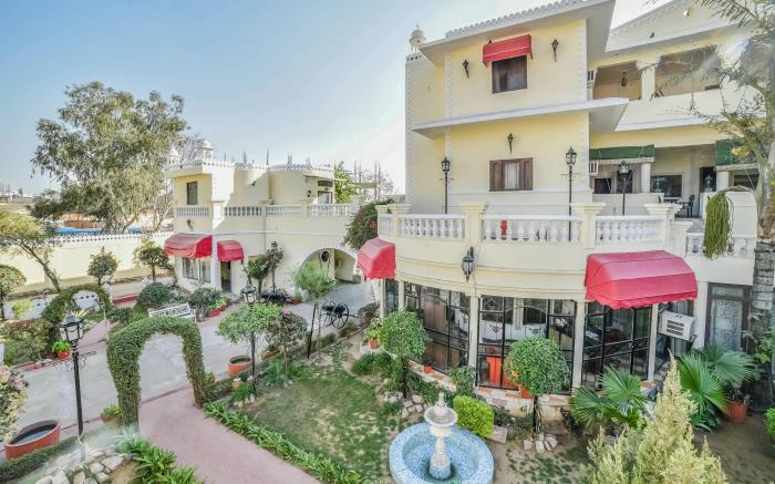 Sugan Niwas Palace provides flawless service and all the necessary facilities for visitors. Stay connected with your associates, as complimentary Wi-Fi is available during your entire visit.To facilitate your arrival and departure, you can pre-book airport transfer services prior to checking in.The hotel offers taxi, car hire and shuttle amenities for your ease in navigating around Jaipur. When arriving by car, you'll be grateful for the on-site complimentary parking at hotel.The hotel offers reception amenities including concierge service, luggage storage and safety deposit boxes to ensure a comfortable stay for guests. Should you require it, the tours can even assist you in booking tickets and securing reservations for the finest shows and events in the vicinity.The hotel also features a fireplace, providing a cozy ambience during cool evenings.Whether it's an extended stay or simply needing fresh attire, dry cleaning service and laundry service provided by hotel ensures your cherished travel garments stay spotless and accessible.Your stay will be comfortable with the presence of 24-hour room service, room service and daily housekeeping as an in-room amenity for your relaxation and enjoyment. In order to ensure the utmost level of relaxation, the guestrooms feature an inviting design and are equipped with all basic necessities, creating a delightful stay experience. To ensure a pleasant stay, a selection of rooms at hotel come furnished with linen service and air conditioning, all designed with your ease in mind.Selected rooms offer in-room amusement like daily newspaper as a source of entertainment for guests to enjoy.Within specific rooms, a coffee or tea maker and bottled water is conveniently available for your use. You'll be pleased to know that select guest bathrooms offer bathroom amenities such as toiletries, ensuring a comfortable stay. Start your day stress-free at Sugan Niwas Palace as breakfast is made available for you on the premises.Various excellent meal offerings at hotel ensure that enticing and easily accessible options are constantly available.Throughout the day, engage in the entertaining activities available at Sugan Niwas Palace.Make sure to discover the readily available beach at hotel.Unwind and conclude each day delightfully by stopping by massage and spa, ensuring a soothing experience. Unwind by the pool at hotel and cherish a leisurely moment.