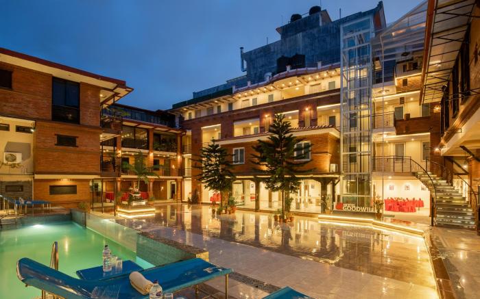 Hotel Goodwill offers top-notch services and amenities, ensuring guests experience utmost comfort.Share your photos and respond to emails at your convenience, thanks to the free Wi-Fi internet access offered by hotel.Should you require transportation to or from the airport, hotel is able to organize it prior to your arrival date.Taxi and shuttle offerings at the hotel simplify arranging your excursions, explorations, and additional activities in Kathmandu. Visitors can take advantage of the accessible parking options directly at the hotel. The accommodating team at the reception will aid you with amenities such as luggage storage. Traveling with minimal baggage is achievable at Hotel Goodwill, as the hotel's dry cleaning service and laundry service ensures your garments stay fresh.Room amenities like room service and daily housekeeping contribute to making a perfect selection for your stay.Smoking is limited to specified smoking zones. Each accommodation at Hotel Goodwill is thoughtfully created and adorned to provide visitors with a comfortable, home-like atmosphere.In certain rooms, the hotel offers linen service and air conditioning for guest convenience and satisfaction.In select rooms, guests at the hotel can enjoy top-notch in-room entertainment with daily newspaper, television and cable TV available for their convenience. Rest assured, in a few chosen rooms, you will find the convenience of bottled water, instant coffee and instant tea at your disposal. Maintain your cleanliness and comfort using a hair dryer, toiletries and bathrobes available in select guest restrooms. Begin your holiday on a high note. At Hotel Goodwill, your mornings are greeted with a delightful, free breakfast. Should you prefer not to venture out for a meal, the enticing culinary choices at hotel are always available for your satisfaction. Experience an unforgettable evening with your fellow travelers just a short distance away, at hotel's bar.Indulge in the numerous pursuits available at Hotel Goodwill.Each day at hotel, immerse yourself in the invigorating waters of the pool, perfect for a rejuvenating plunge or a series of revitalizing laps.