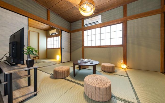 At Entire Japanese Style Flat(55㎡), Convenient Access, every guestroom is provided with convenient amenities and fittings to ensure a comfortable stay. Elevate your experience at apartment with the knowledge that certain rooms are equipped with linen service, ensuring a more pleasant stay for you. Certain rooms offer in-room amusement features such as the television for your enjoyment. In the apartment, certain guest bathrooms come equipped with essential bathroom amenities, such as a hair dryer and toiletries, ensuring a comfortable stay for guests.