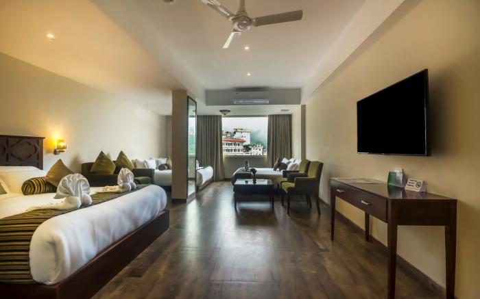 At EllBee Mussoorie Hills, exceptional service and top-notch amenities create a memorable experience for guests.Complimentary internet access is available in the hotel to ensure you stay connected during your visit.Arrange your trips to and from the airport using the hotel's convenient transportation services booking. Amenities at shuttle offered by EllBee Mussoorie Hills simplify the organization of your excursions, tourist activities, and other adventures in Mussoorie.For guests with their own vehicle, parking facilities are provided.Continuously receive the support you require through front desk amenities such as concierge service.At the hotel, their ticket service and tours is also capable of assisting with booking tickets and securing reservations for entertainment and adventures.Always look your best in your preferred attire with the dry cleaning service and laundry service provided at EllBee Mussoorie Hills. Craving relaxation? In-room amenities such as 24-hour room service and daily housekeeping allow you to maximize your time spent inside the room. Accommodations come equipped with all the conveniences required for a restful night's slumber.A selection of rooms at EllBee Mussoorie Hills come furnished with air conditioning to cater to your needs and comfort.In certain chosen rooms, a refrigerator is conveniently available for your use. At EllBee Mussoorie Hills, each day commences with a scrumptious breakfast offered at no additional cost.An evening spent at hotel's bar can offer as much enjoyment as venturing out with your fellow travelers. At EllBee Mussoorie Hills, affordable refreshments are available 24/7 through the convenient vending machines on-site.