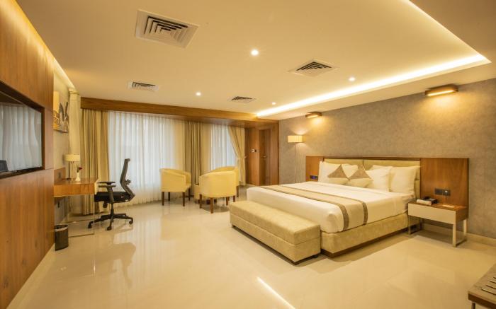 Royal Plaza Suites by RAK Rooms provides flawless service and all the necessary facilities for visitors.Stay connected with your associates, as complimentary Wi-Fi is available during your entire visit.To facilitate your arrival and departure, you can pre-book airport transfer services prior to checking in.The hotel offers taxi amenities to assist you in discovering your desired offerings in Mangalore. When arriving by car, you'll be grateful for the on-site complimentary parking at hotel. The hotel offers reception amenities including luggage storage and safety deposit boxes to ensure a comfortable stay for guests. Whether you're here for an extended stay or simply require fresh garments, the hotel ensures your cherished travel attire remains spotless and accessible with the convenience of laundry service located on the premises.Your stay will be comfortable with the presence of room service and daily housekeeping as an in-room amenity for your relaxation and enjoyment.Smoking is permitted solely in the specified smoking zones allocated by hotel.In order to ensure the utmost level of relaxation, the guestrooms feature an inviting design and are equipped with all basic necessities, creating a delightful stay experience. To ensure a pleasant stay, a selection of rooms at hotel come furnished with linen service, blackout curtains and air conditioning, all designed with your ease in mind.In select rooms, visitors can enjoy a touch of amusement with the availability of television and cable TV for their entertainment needs. Within specific rooms, a refrigerator, bottled water, a coffee or tea maker and mini bar is conveniently available for your use. Understanding the significance of bathroom facilities in enhancing visitor contentment, hotel offers a hair dryer and toiletries within a few chosen chambers. Start your day stress-free at Royal Plaza Suites by RAK Rooms as breakfast is made available for you on the premises. Throughout the day, engage in the entertaining activities available at Royal Plaza Suites by RAK Rooms.Guests who enjoy maintaining their fitness regimen while on holiday can visit the fitness center provided by hotel.