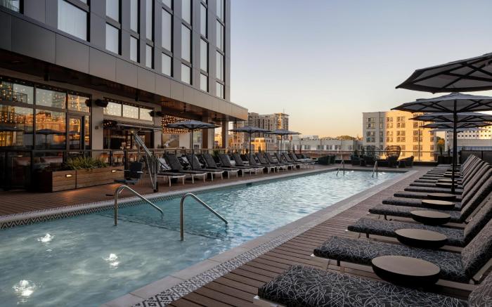 Great care is taken to ensure guests experience comfort through top-notch services and amenities. Remain linked during your visit by utilizing the complimentary internet access available.Parking is accessible, supplied by the hotel for guests who arrive by car. Effortlessly plan your daily activities and travel requirements with concierge service and luggage storage provided by the front desk services.The hotel is completely smoke-free.Crafted for coziness, every guestroom provides an array of features, guaranteeing a tranquil night's sleep while maintaining the level of comfort. For an elevated experience at hotel, select rooms are equipped with blackout curtains to improve your stay.For certain chosen rooms, guests can enjoy in-room amusement like television and in-room video streaming as a part of their stay.In select rooms, the hotel offers visitors access to instant tea.It is worth noting that certain guest bathrooms feature a hair dryer, toiletries and bathrobes for your convenience. During your visit, indulge in a range of delightful culinary choices at hotel to enhance your experience.Experience a fantastic evening effortlessly! Relish an entertaining night without venturing beyond the confines of the bar.Hotel Fraye Nashville, Curio Collection by Hilton provides a superb assortment of leisure amenities for guests to enjoy. Begin your holiday perfectly by taking a plunge into the swimming pool. Eliminate those holiday calories by stopping by hotel and making use of their well-equipped exercise amenities.