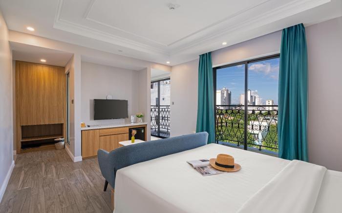 Le Cap Hotel & Apartment offers top-notch services and amenities, ensuring guests experience utmost comfort. Share your photos and respond to emails at your convenience, thanks to the free Wi-Fi internet access offered by hotel.Should you require transportation to or from the airport, hotel is able to organize it prior to your arrival date. Taxi offerings at the hotel enhance the ease of discovering Da Nang.Visitors can take advantage of complimentary parking directly at the hotel. Reception services such as concierge service, express check-in or check-out, luggage storage and safety deposit boxes are available to accommodate your requirements. Should you desire access to the top entertainment in the city, assistance can be provided by the hotel's ticket service. Traveling with minimal baggage is achievable at Le Cap Hotel & Apartment , as the hotel's dry cleaning service and laundry service ensures your garments stay fresh. Room amenities like room service and daily housekeeping contribute to making a perfect selection for your stay.Smoking is limited to specified smoking zones.Each accommodation at Le Cap Hotel & Apartment is thoughtfully created and adorned to provide visitors with a comfortable, home-like atmosphere. In certain rooms, the hotel offers linen service, blackout curtains and air conditioning for guest convenience and satisfaction.At Le Cap Hotel & Apartment , uniquely crafted rooms provide various layout choices, featuring spaces equipped with separate living room and balcony or terrace.In select rooms, guests at the hotel can enjoy top-notch in-room entertainment with television, in-room video streaming and cable TV available for their convenience.Rest assured, in a few chosen rooms, you will find the convenience of a refrigerator, bottled water, a coffee or tea maker, instant coffee, instant tea and mini bar at your disposal. Maintain your cleanliness and comfort using a hair dryer and toiletries available in select guest restrooms. Embark on your holiday experience in the most ideal manner. Commence each morning of your visit with an on-site breakfast. Experience the delight of a fresh morning by savoring excellent coffee at the cafe situated within hotel.Should you prefer not to venture out for a meal, the enticing culinary choices at hotel are always available for your satisfaction. No matter your specific dietary needs, rest assured that Le Cap Hotel & Apartment provides an array of halal choices to ensure your dining experience is nothing short of delightful. Experience an unforgettable evening with your fellow travelers just a short distance away, at hotel's bar.Le Cap Hotel & Apartment provides a superb assortment of leisure amenities for guests to enjoy.Make certain to allocate time for discovering the shoreline, easily reachable right from the hotel.Each day at hotel, immerse yourself in the invigorating waters of the pool, perfect for a rejuvenating plunge or a series of revitalizing laps.Bypass the formal attire and choose a laid-back mixed drink or brew at hotel's waterside lounge.For individuals who don't want to skip their exercise routine, visiting the hotel fitness center ensures you maintain your vitality and wellness.