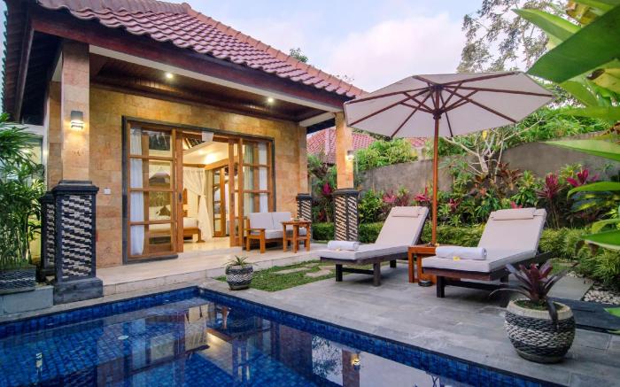 Great care is taken to ensure guests experience comfort through top-notch services and amenities. Stay connected with your associates, as complimentary Wi-Fi is available during your entire visit.When arriving by car, take advantage of the resort villa's convenient on-site parking facilities.The resort villa offers reception amenities including luggage storage and safety deposit boxes to ensure a comfortable stay for guests.The resort villa's daily housekeeping ensures an excellent option for your stay. In order to ensure the utmost level of relaxation, the guestrooms feature an inviting design and are equipped with all basic necessities, creating a delightful stay experience.To ensure a pleasant stay, a selection of rooms at resort villa come furnished with linen service, blackout curtains and air conditioning, all designed with your ease in mind. Several chosen accommodations at Danakha Villa Ubud have a balcony or terrace incorporated into the room design.In select rooms, visitors can enjoy a touch of amusement with the availability of television and cable TV for their entertainment needs.Within specific rooms, a refrigerator, bottled water, a coffee or tea maker, instant coffee, instant tea and mini bar is conveniently available for your use. Understanding the significance of bathroom facilities in enhancing visitor contentment, resort villa offers a hair dryer, toiletries and bathrobes within a few chosen chambers. Start your day stress-free at Danakha Villa Ubud as breakfast is made available for you on the premises. Various excellent meal offerings at resort villa ensure that enticing and easily accessible options are constantly available.Throughout the day, engage in the entertaining activities available at Danakha Villa Ubud. Unwind by the pool at resort villa and cherish a leisurely moment.
